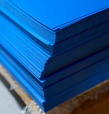 Plastic fabrication starts with a full size sheet of thermoplastic. The sheet is then cut-to-size. Most plastics distributors perform this service. For high quantity applications, computerized saws cut stacks of sheets into precise “blank” sizes at very high speeds.