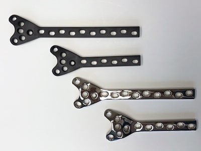 - CF PEEK provides complete radiolucency – Metal plates do not provide for unobscured imaging for the surgeon and this can restrict the surgeon’s ability to see exactly what is occurring intra-operatively. Furthermore, the use of CF PEEK bone plates allows for the clearest and unobstructed post-operative visualization for follow up visits to evaluate healing.